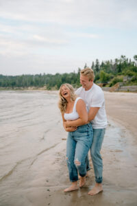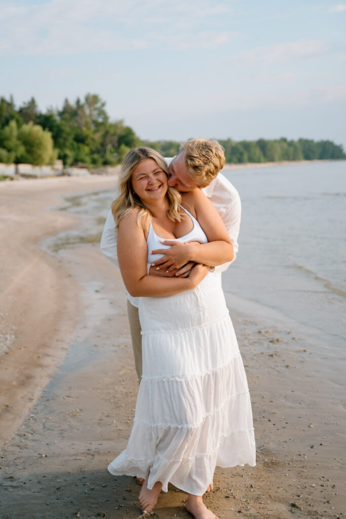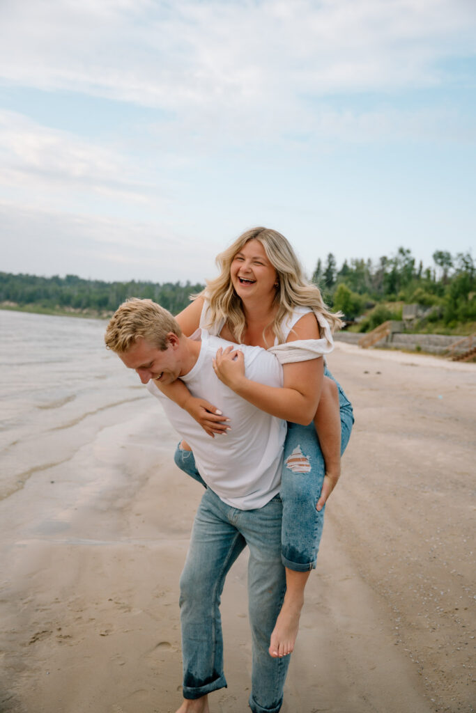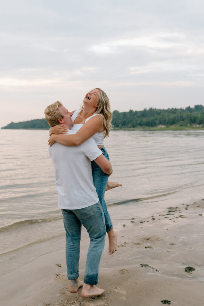 As a Manitoba engagement photographer, I love sessions that feel like a real moment in a couple’s life rather than something overly posed. This engagement session at Lester Beach was exactly that — playful, sweet, and full of genuine connection.